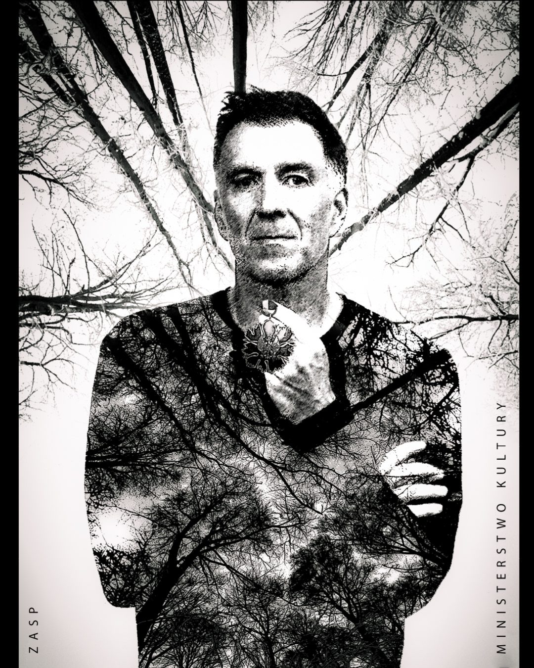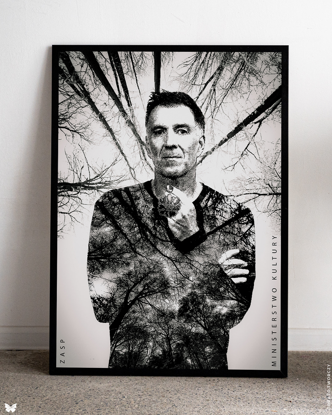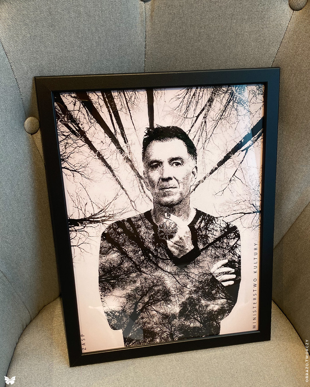 Personalizowany portret wykonany na zamówienie z okazji wręczenia Srebrnego Medalu „Zasłużony Kulturze Gloria Artis” dla Pana Radosława Krzyżowskiego.