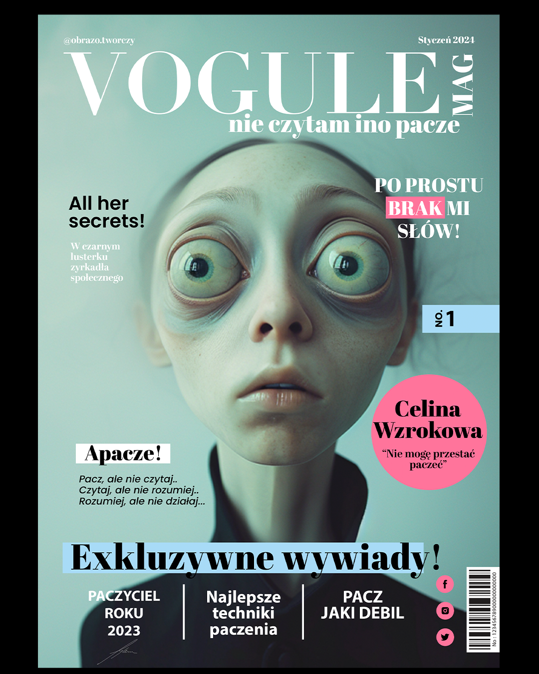Satyryczna przeróbka okładki znanego magazynu modowego.